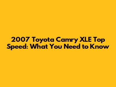 2007 Camry XLE: Max Speed & Performance Insights