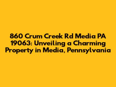 Let's dive into everything you need to know about the property located at 860 Crum Creek Rd, Media, PA 19063. This address pinpoints a unique residence nestled in the heart of Media, a borough known for its vibrant community, historical charm, and convenient location. Whether you're a prospective buyer, a curious neighbor, or just someone interested in real estate, this guide will provide you with a comprehensive overview of what makes this property and its location so special. We'll explore the characteristics of the house itself, the surrounding neighborhood, and the lifestyle that comes with living in Media, PA. So, buckle up, and let's get started on this informative journey to discover all the details about 860 Crum Creek Rd!