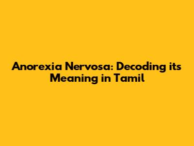Hey guys! Let's dive into something super important: anorexia nervosa. We'll break down what it means, especially in Tamil, so everyone can understand. It's a serious eating disorder, and knowing the basics can make a huge difference. Anorexia nervosa is a complex condition, and understanding its nuances is the first step toward helping those affected. We'll explore the definition, symptoms, causes, and treatment options, all while making sure the information is clear and easy to grasp. This guide aims to provide a comprehensive overview, making it accessible and informative for everyone. We'll also touch upon the impact of anorexia nervosa and the importance of seeking professional help. The goal is to empower you with knowledge, enabling you to recognize the signs, support those in need, and foster a healthier community. This isn't just about the medical aspects; it's about understanding the emotional and psychological dimensions, too. Ready to learn more? Let's get started!