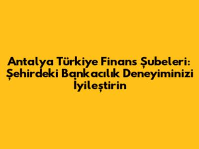 Türkiye Finans'ın Antalya şubeleri, müşterilerine geniş bir yelpazede bankacılık hizmeti sunmaktadır. İhtiyaçlarınıza yönelik çeşitli finansal çözümler bulabilirsiniz. İşte Türkiye Finans'ın Antalya şubelerinde bulabileceğiniz bazı hizmetler: