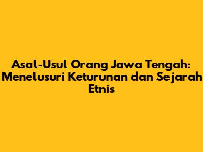 Asal-Usul Orang Jawa Tengah: Penelusuran Keturunan Dan Sejarah Etnis