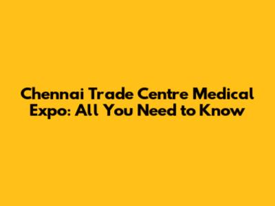 Chennai Trade Centre Medical Expo: All You Need To Know