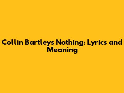 Collin Bartley's Nothing: Lyrics And Meaning