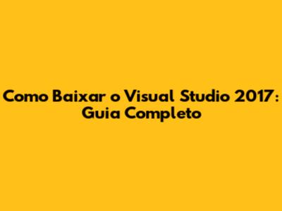 Hey pessoal! Quer aprender como baixar o Visual Studio 2017? Este guia completo vai te mostrar o passo a passo para você ter essa poderosa ferramenta de desenvolvimento no seu computador. Vamos lá!