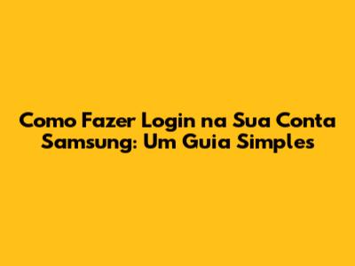 Como Fazer Login Na Sua Conta Samsung: Um Guia Simples