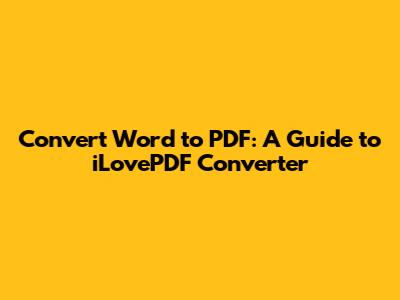 Convert Word To PDF: A Guide To ILovePDF Converter