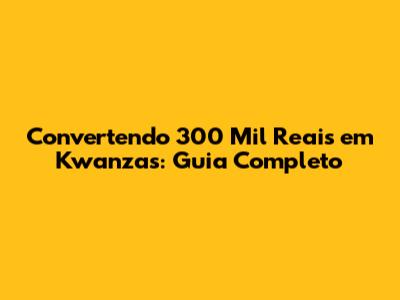 Convertendo 300 Mil Reais Em Kwanzas: Guia Completo
