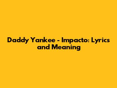 Hey guys! Today, let's dive deep into one of Daddy Yankee's most iconic tracks: Impacto. This song isn't just a reggaeton banger; it's a whole vibe. We're going to break down the lyrics, explore the meaning, and understand why this track remains a classic in the world of Latin music. Get ready to move your feet and learn something new!