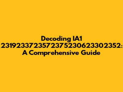 Decoding IA1 2319233723572375230623302352: A Comprehensive Guide