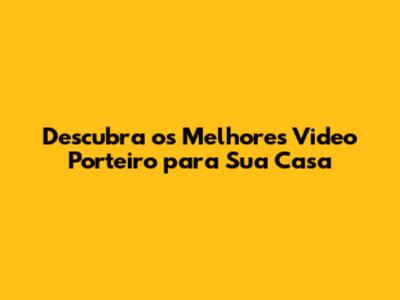 Descubra Os Melhores Video Porteiro Para Sua Casa