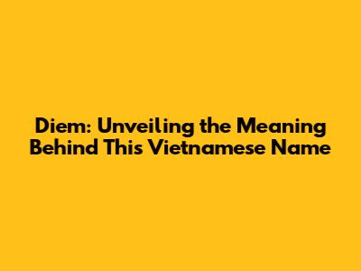Diem: Unveiling The Meaning Behind This Vietnamese Name