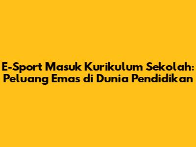 E-Sport Di Kurikulum Sekolah: Peluang Dan Tantangan