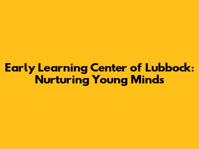 Early Learning Center Of Lubbock: Nurturing Young Minds