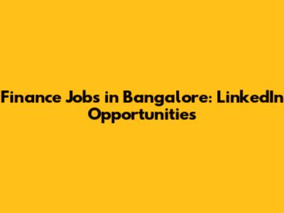 Finance Jobs In Bangalore: LinkedIn Opportunities