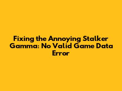 Hey guys! Running into the dreaded "No Valid Game Data" error when trying to dive into Stalker Gamma? Don't worry; it's a common issue, and we can usually get it sorted out pretty quickly. This guide will walk you through the most common causes and how to fix them, so you can get back to exploring the Zone.