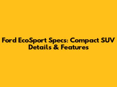 Ford EcoSport Specs: Compact SUV Details & Features