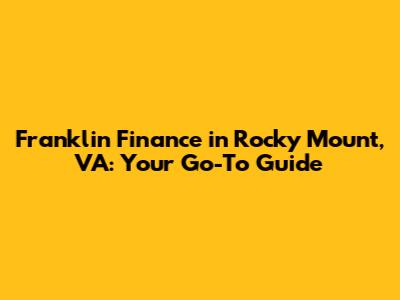 Franklin Finance In Rocky Mount, VA: Your Go-To Guide