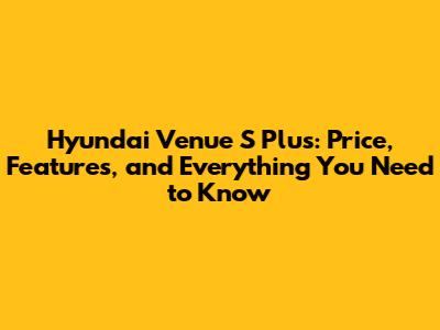 Hyundai Venue S Plus: Price, Features, And Everything You Need To Know