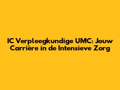 De vacature IC verpleegkundige UMC biedt een uitdagende en belonende carrière in de intensieve zorg. Je kunt je vaardigheden en kennis gebruiken om kritiek zieke patiënten te verzorgen. Het UMC biedt een stimulerende werkomgeving met mogelijkheden voor opleiding en ontwikkeling. Bekijk de vacatures en solliciteer. Je kunt deel uitmaken van een geweldig team dat de beste zorg verleent. Succes met solliciteren!