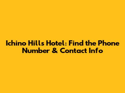 Ichino Hills Hotel: Find The Phone Number & Contact Info