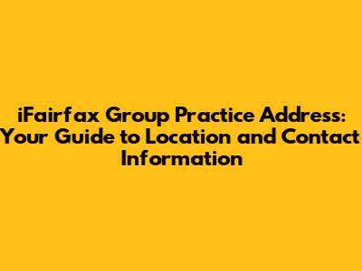 Finding the iFairfax Group Practice address and understanding how to get there is just the first step in accessing quality healthcare. Knowing the location, contact details, and what to expect when you arrive can make your experience much smoother and more comfortable. iFairfax Group Practice is there to support your health needs, so don’t hesitate to reach out and schedule an appointment.