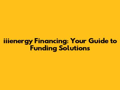 Iiienergy Financing: Your Guide To Funding Solutions