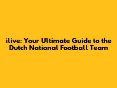 Ilive: Your Guide To The Dutch National Football Team