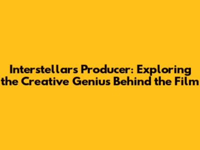 Hey everyone, let's dive into the fascinating world of Interstellar and spotlight the brilliant mind behind the scenes: the producer! This is a deep dive into the person who helped make this epic sci-fi film a reality. We're going to explore their role, the challenges they faced, and how they contributed to Interstellar's success. It's time to pull back the curtain and uncover the secrets of the producer's influence. Buckle up, guys, because this is going to be an exciting ride!