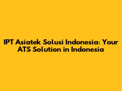 IPT Asiatek: Your ATS Solution In Indonesia