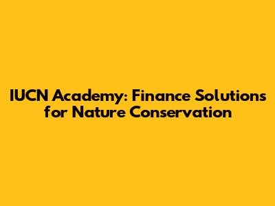 IUCN Academy: Finance Solutions For Nature Conservation