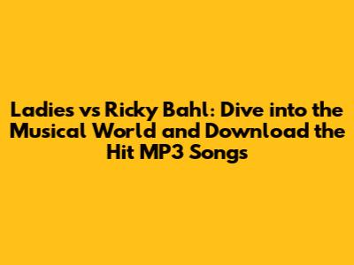 Hey music lovers! Ever found yourself humming a tune from a movie, and just had to have it on repeat? Well, if you're a fan of catchy Bollywood beats and a good ol' romantic comedy, then you've probably stumbled upon the soundtrack of 'Ladies vs Ricky Bahl'. This movie, starring the sizzling pair of Ranveer Singh and Anushka Sharma, gave us some seriously groovy tracks. If you're here, chances are you're looking to download Ladies vs Ricky Bahl MP3 songs. Let's get down to it, guys! We're going to dive into the music, talk about how to get your hands on these tunes, and explore why this soundtrack continues to be a favorite among many. Buckle up; it's going to be a fun ride through the world of Bollywood music!