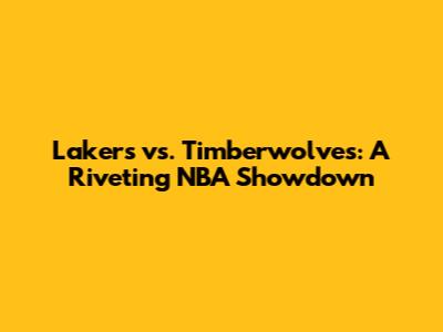 Lakers Vs. Timberwolves: A Riveting NBA Showdown