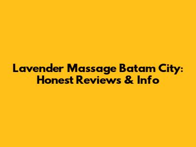 Hey guys! Planning a trip to Batam and looking for a relaxing massage? Or maybe you're a local searching for the best spa experience? Well, you've come to the right place! Today, we're diving deep into Lavender Massage Batam City, giving you the lowdown on what to expect, honest reviews, and all the essential info you need before booking your appointment. Forget generic descriptions – we're talking real experiences, real opinions, and everything in between to help you make the best choice for your relaxation needs. So, grab a cup of tea, sit back, and let's get started on this Batam massage adventure!