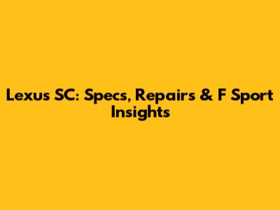 Lexus SC: Specs, Repairs & F Sport Insights