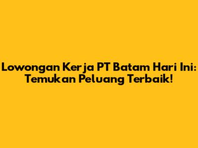 Lowongan Kerja PT Batam Hari Ini: Temukan Peluang Terbaik!