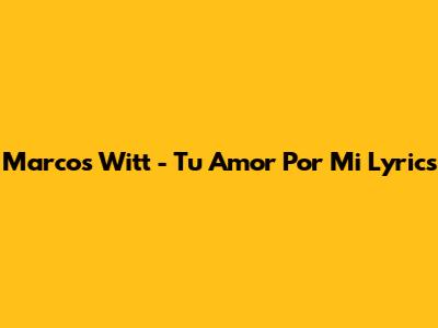 Marcos Witt Tu Amor Por Mi Lyrics