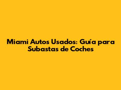 • ¿Dónde puedo encontrar subastas de autos en Miami? Pueden encontrar subastas de autos en Miami en línea, en periódicos locales, en sitios web especializados y directamente en los sitios web de las subastas.