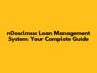 N0osclmssc Loan Management System: Your Complete Guide