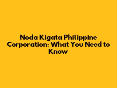 Noda Kigata Philippine Corporation: What You Need To Know