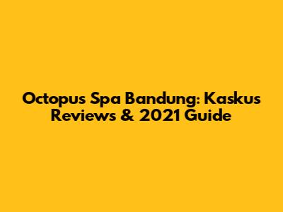 Octopus Spa Bandung: Kaskus Reviews & 2021 Guide