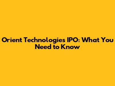 Hey guys, let's dive into the exciting world of Initial Public Offerings, or IPOs, with a special focus on Orient Technologies Limited IPO. If you're looking to get in on the ground floor of potentially groundbreaking companies, understanding IPOs is key. Orient Technologies, a company making waves in its sector, is gearing up for its IPO, and this is your chance to get the lowdown on what it all means. We'll break down why this particular IPO is generating buzz, what the company does, and what you should be considering before you decide to invest. It's not just about buying shares; it's about understanding the opportunity, the risks, and the potential rewards. So, buckle up as we explore the ins and outs of the Orient Technologies Limited IPO, helping you make informed decisions in the dynamic stock market landscape.