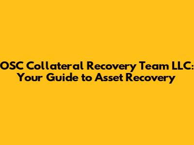 OSC Collateral Recovery Team LLC: Navigating Asset Recovery