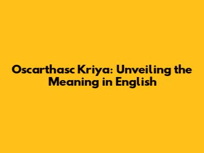 Oscarthasc Kriya: Unveiling The Meaning In English