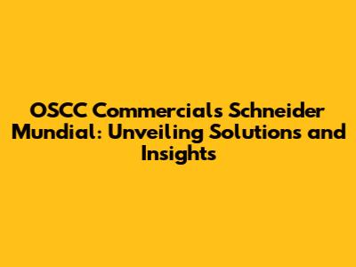 OSCC Commercials Schneider Mundial: Solutions & Insights