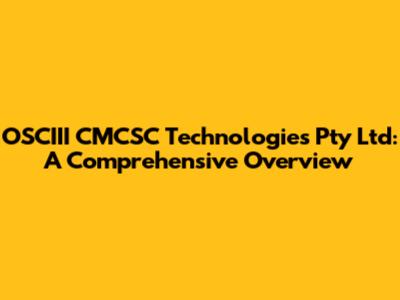 OSCIII CMCSC Technologies Pty Ltd: A Comprehensive Overview