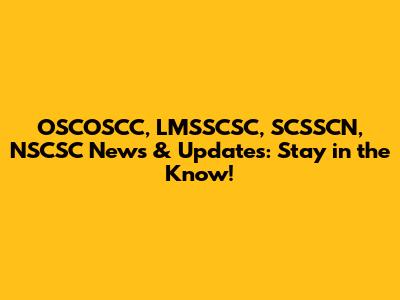 OSCOSCC, LMSSCSC, SCSSCN, NSCSC News & Updates