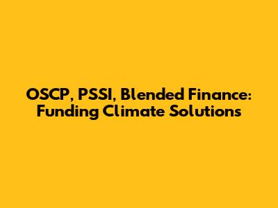 OSCP, PSSI, Blended Finance: Funding Climate Solutions