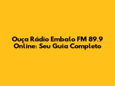 Ouça Rádio Embalo FM 89.9 Online: Seu Guia Completo