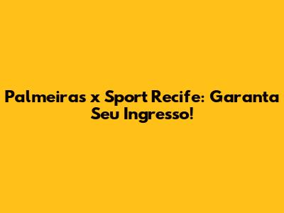 Palmeiras X Sport Recife: Garanta Seu Ingresso!