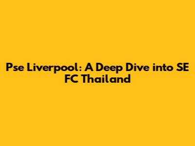 Pse Liverpool: A Deep Dive Into SE FC Thailand